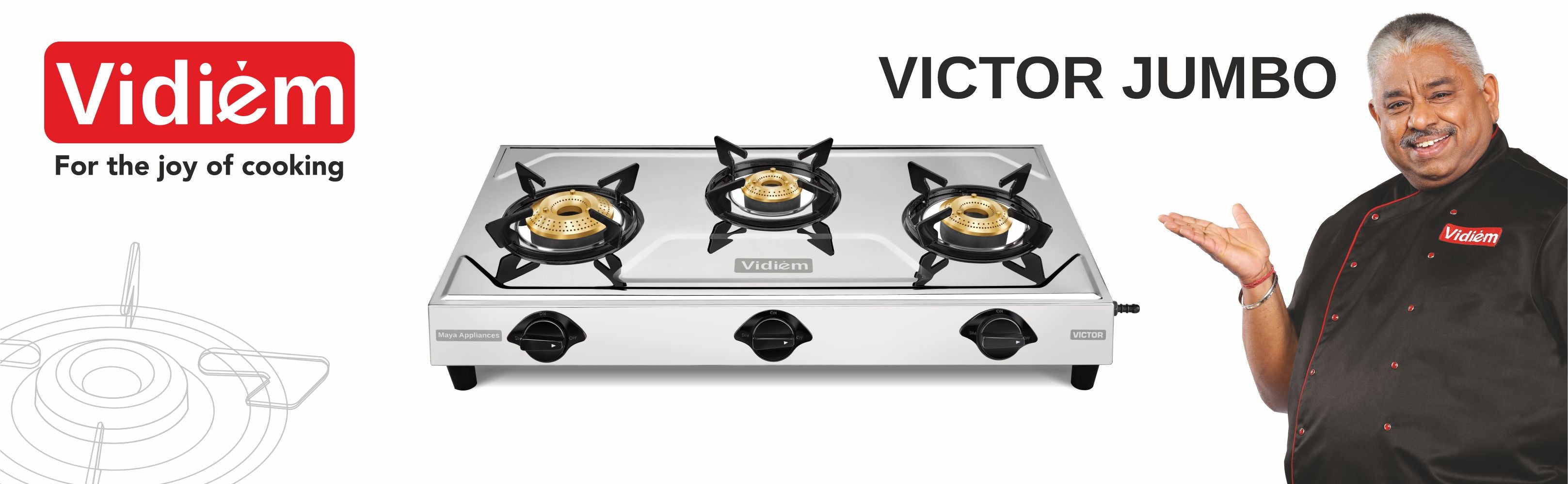 VIDIEM VICTOR JUMBO 3 BURNER GAS STOVE