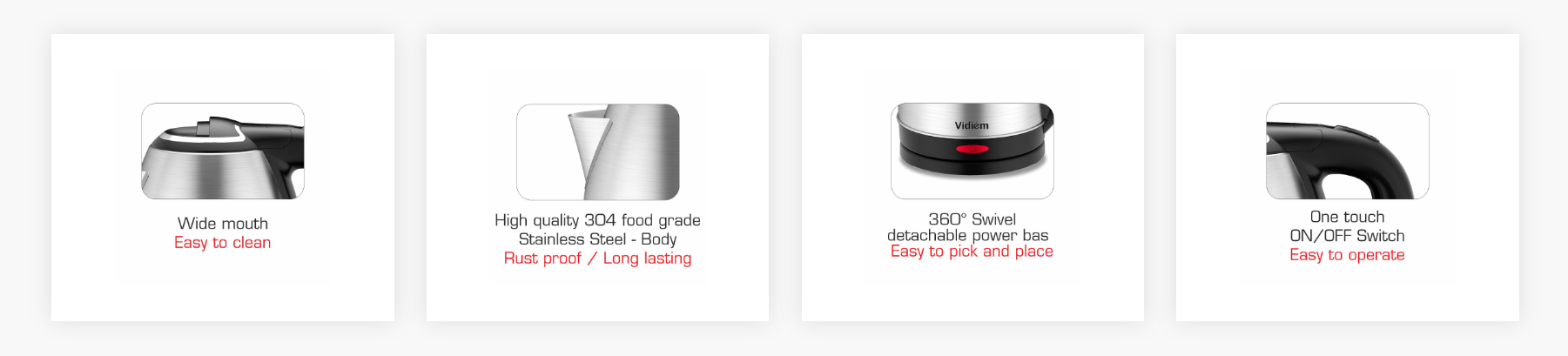 ✅ Concealed Heating Element – For quick boiling & limescale build - up is minimized.