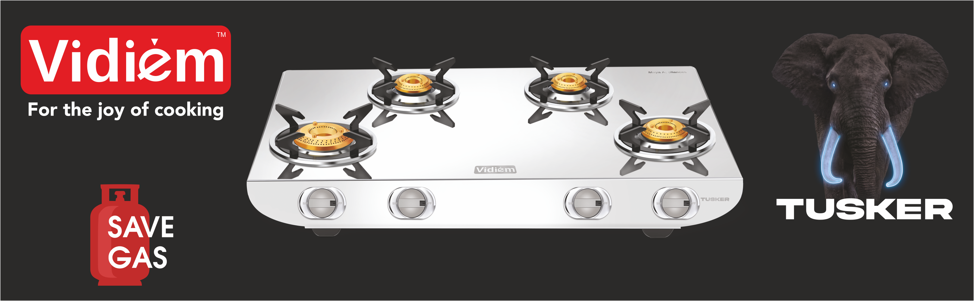 ✅ Vidiem Tusker 2mm High Gloss SS Body , Extra Large Cooking Surface & Widely Spaced Burners to accommodate Large Vessels with Jumbo, Medium & Small Dura Forged Brass Burners.
