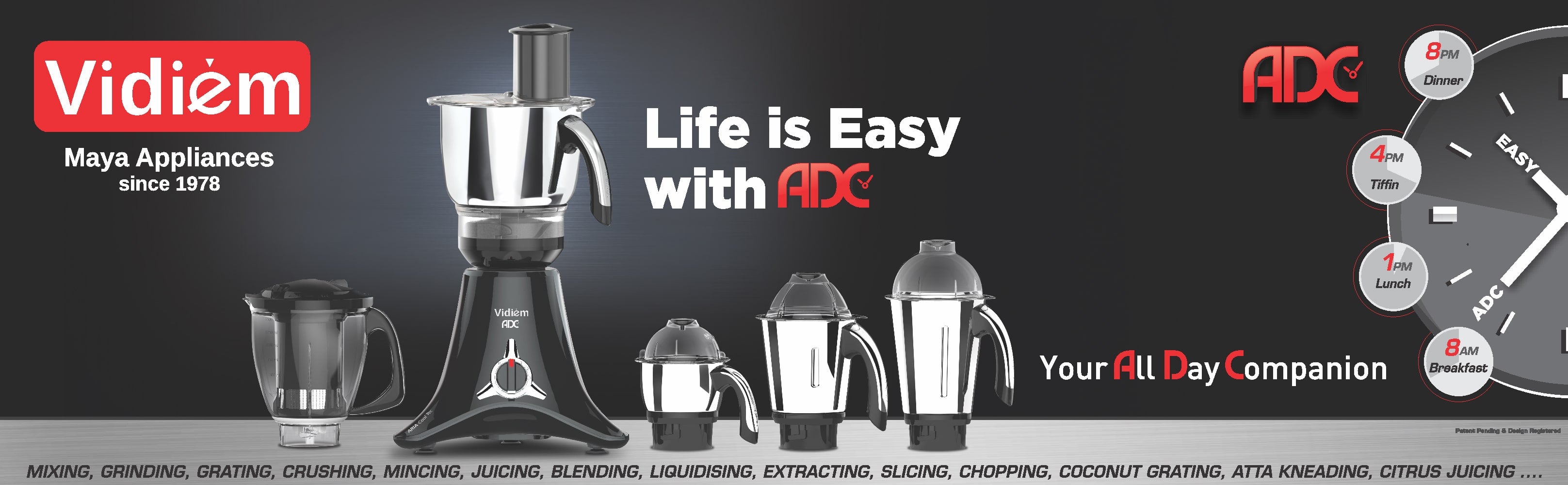✅ Vidiem ADC,mixer grinder 750 watt+ - Your All Day Companion Mixing, Grinding, Grating, Crushing, Juicing, Blending, Liquidising, Extracting, Thick & Thin Slicing, Chopping,Mincing, Coconut Grating , Atta Kneading, Citrus Juicing. 2 Litre Stainless Steel Multi Chef with Double reduction Gear Box for High Torque & Low Noise with Polycarbonate Lid.